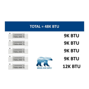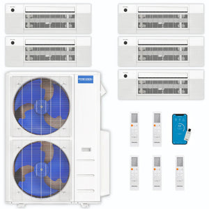 Introducing the 4th Generation MRCOOL Mini Split system, a comprehensive climate control solution featuring a DIY 48,000 BTU Multi-Zone Condenser, four 9,000 BTU Ceiling Cassette Air Handlers, one 12,000 BTU Ceiling Cassette Air Handler, and five remote controls. Remarkably, this system is designed for easy self-installation, allowing you to take charge of your home's comfort.
